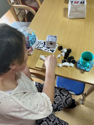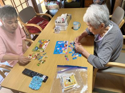 利用者様にパズルのやり方を教わって、頑張っていました(*^^)