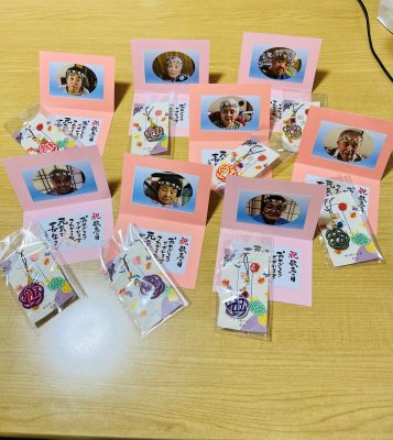 利用者様に、いつまでもお元気でいてほしいという思いをこめて、水引のストラップをプレゼントさせて頂きました(*^^)